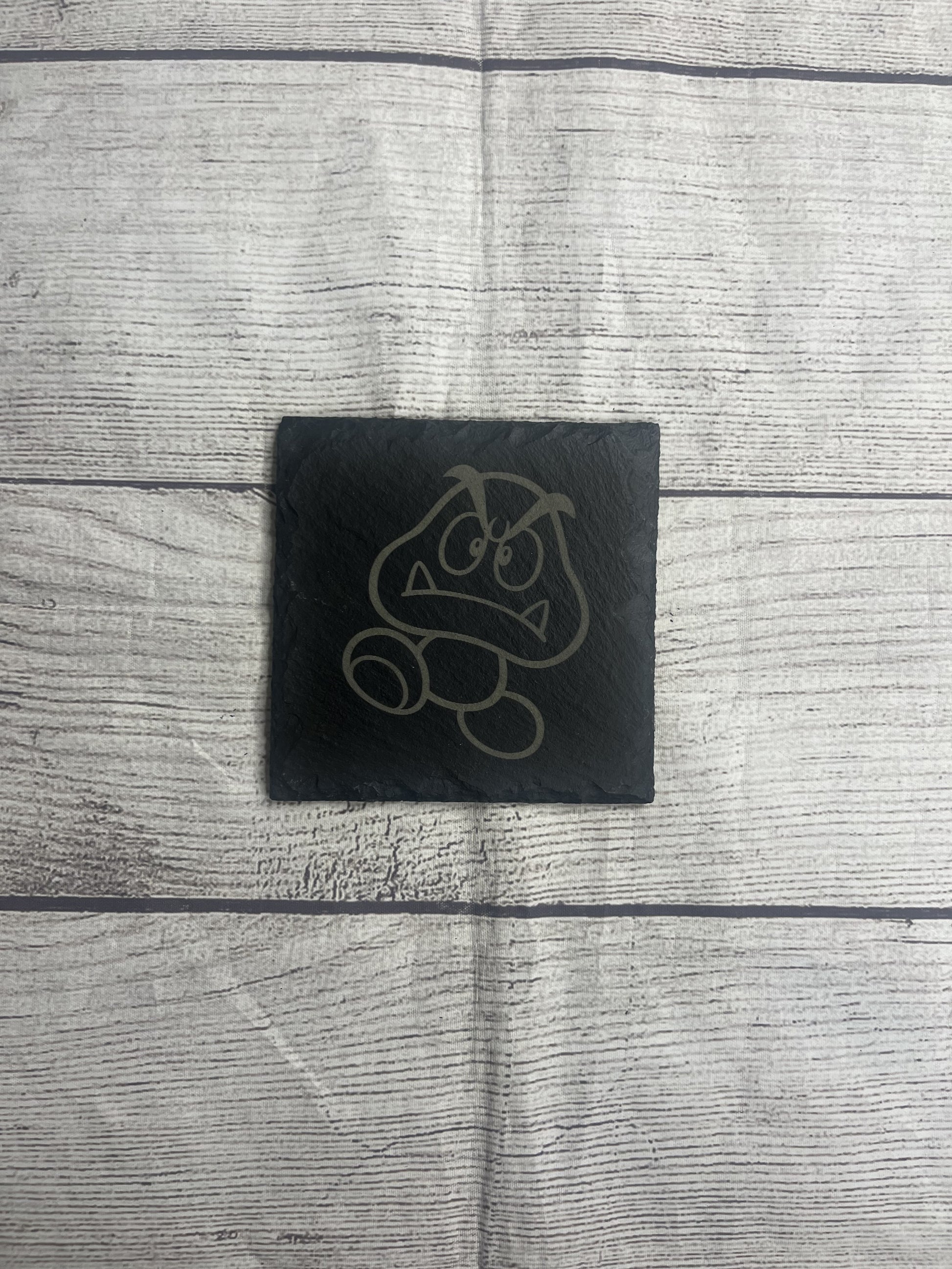 Level up your home decor with these Goomba Laser Engraved Slate Coasters. Each 4x4" natural slate coaster features precision laser-engraved designs of the iconic mushroom enemy from the legendary gaming franchise, bringing nostalgic gaming vibes to your space.
