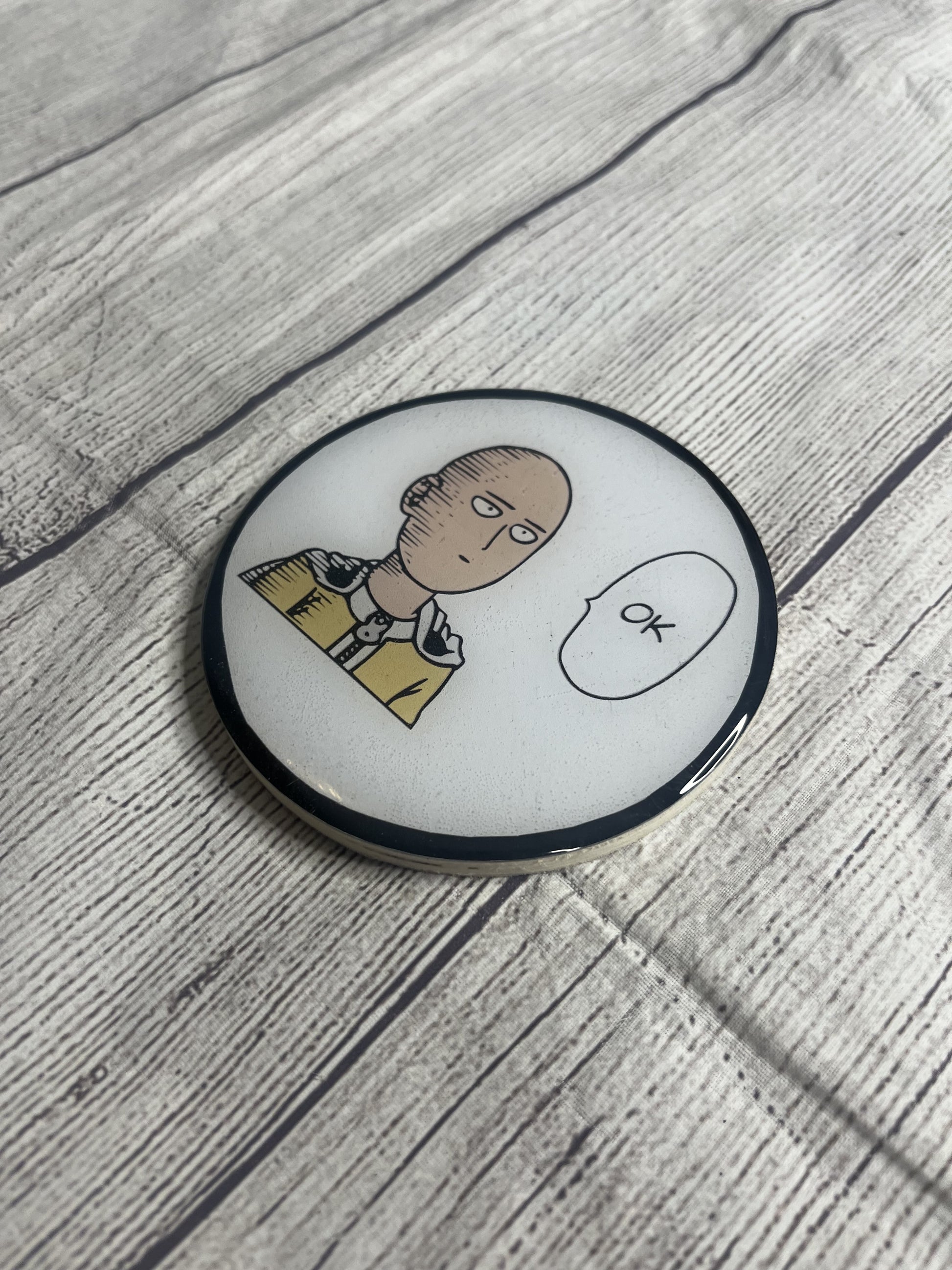 Bring the power of One Punch Man to your home with this stunning handcrafted epoxy resin coaster! Perfect for anime fans and collectors, this unique piece combines artistry with functionality to protect your surfaces in style.