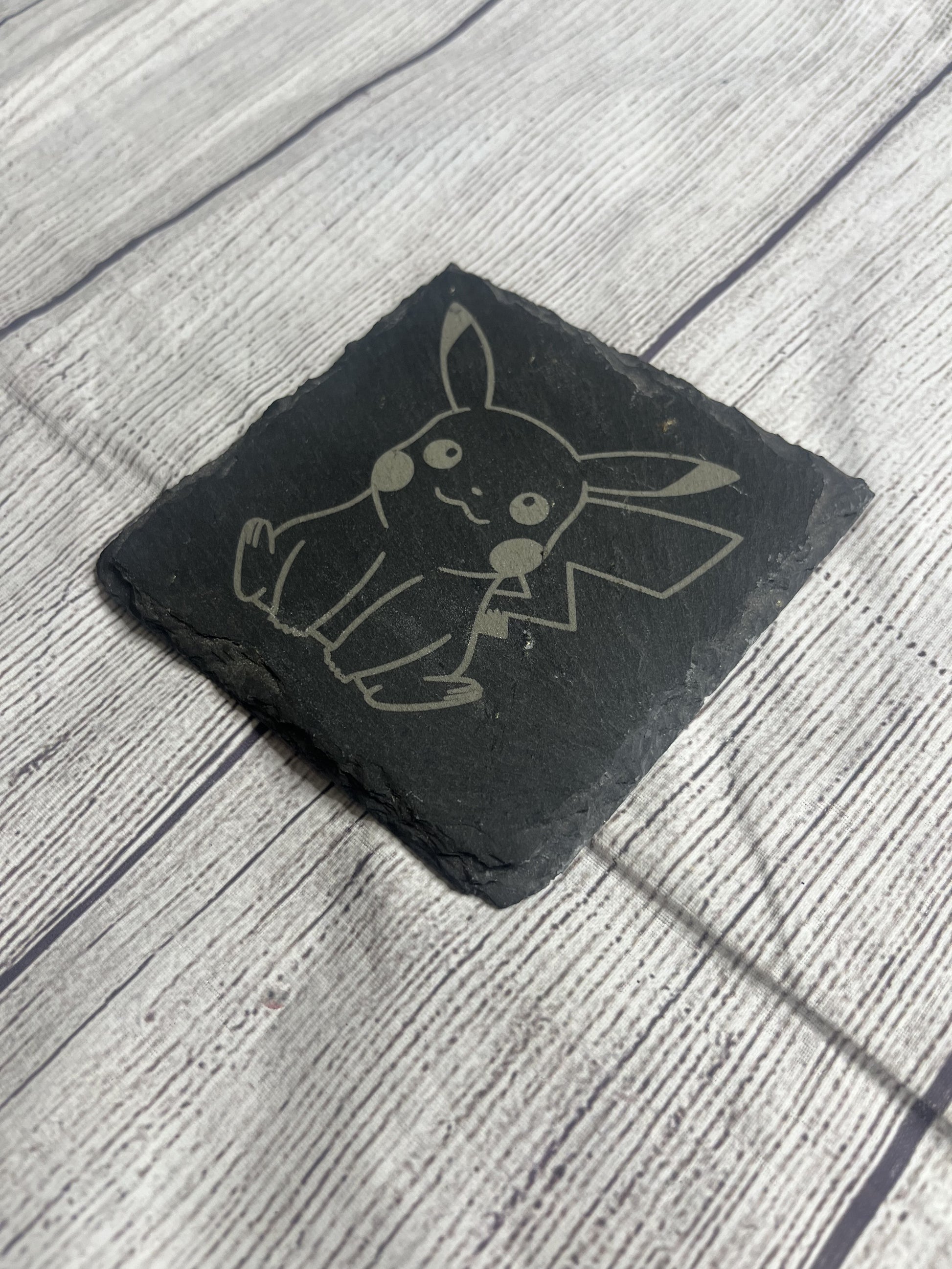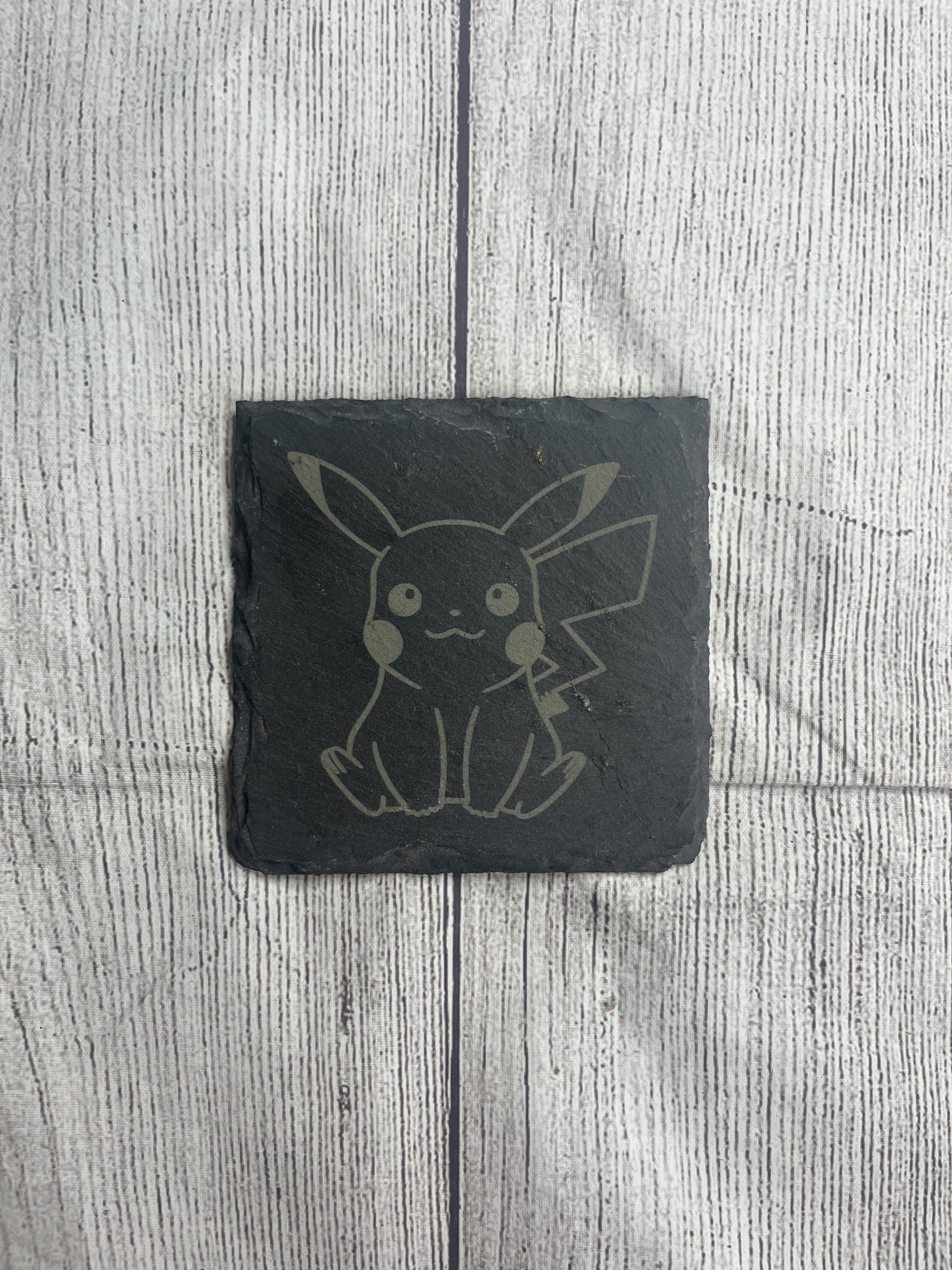 Bring home the world's most beloved Electric-type Pokémon with these adorable laser-engraved Pikachu slate coasters. Perfect for Pokémon fans of all ages, these coasters feature the iconic Mouse Pokémon meticulously engraved into natural slate, adding a spark of joy to your home.