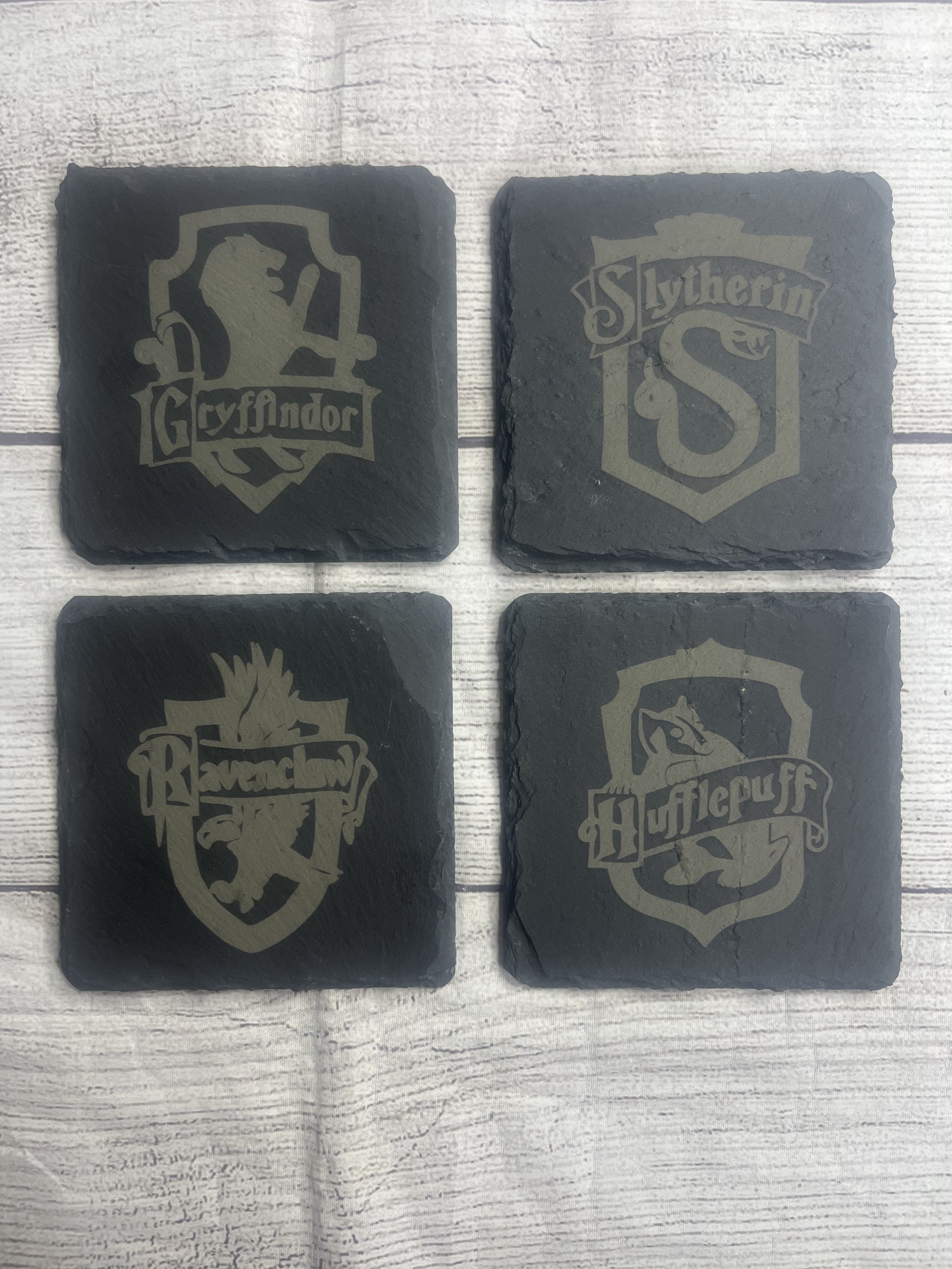 Perfect gift for wizarding world enthusiasts, book lovers, or anyone who appreciates unique, functional art. These durable slate coasters are built to last – show your house pride with every sip!
