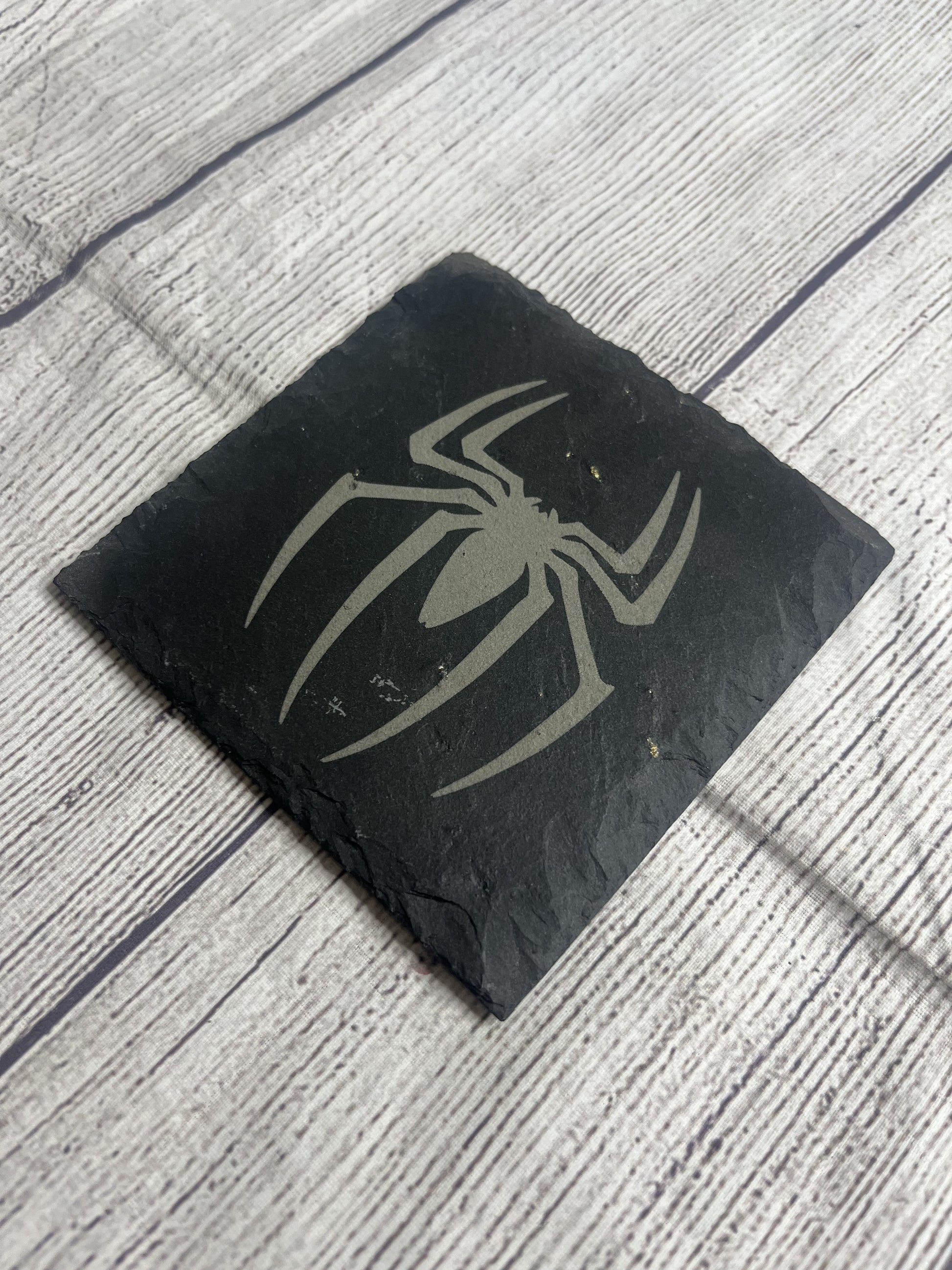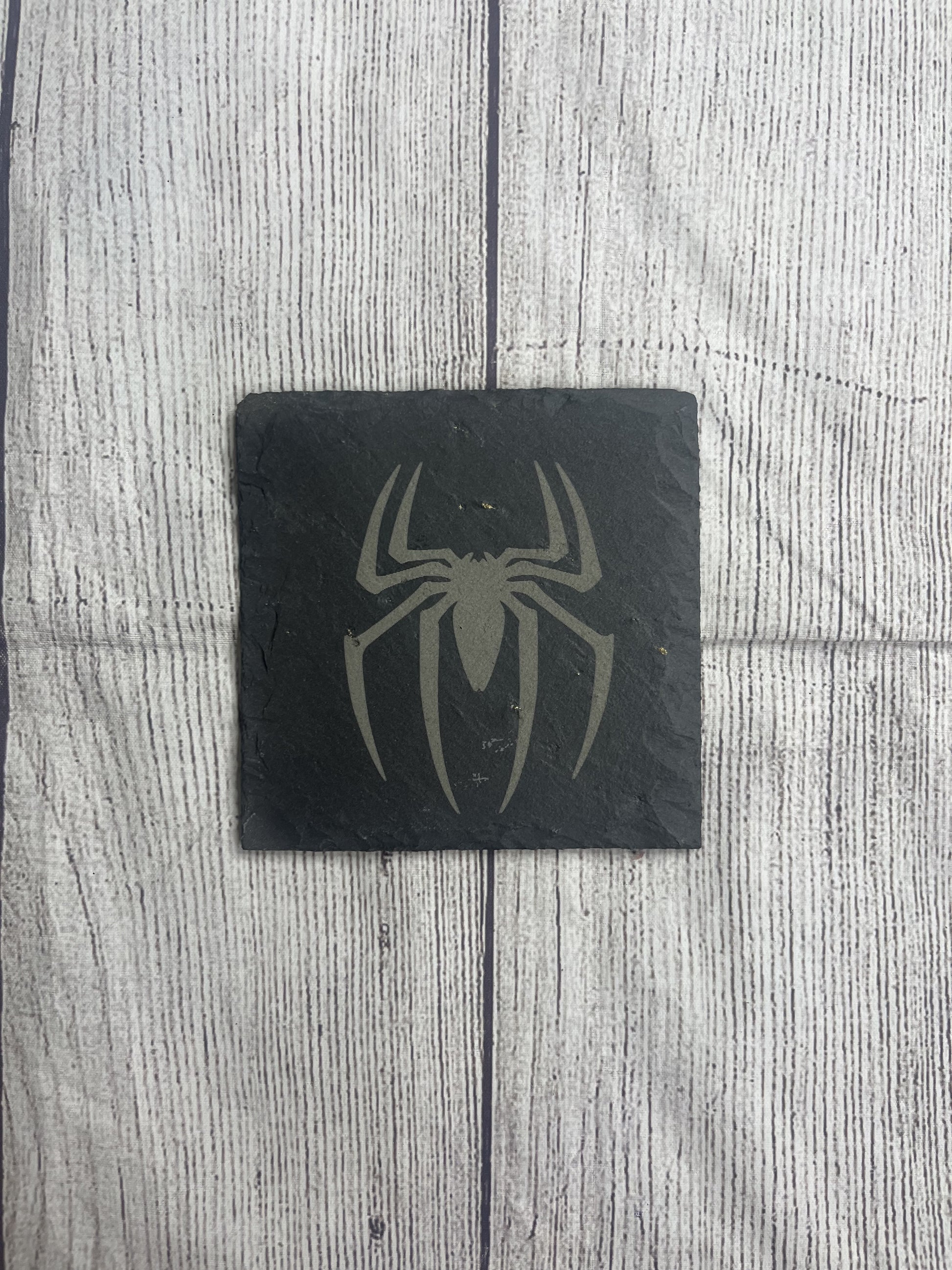 With great power comes great responsibility – and great coasters! These Spider Laser Engraved Slate Coasters feature the iconic spider emblem on premium 4x4" natural slate, bringing the spirit of your friendly neighborhood Spider to your home.