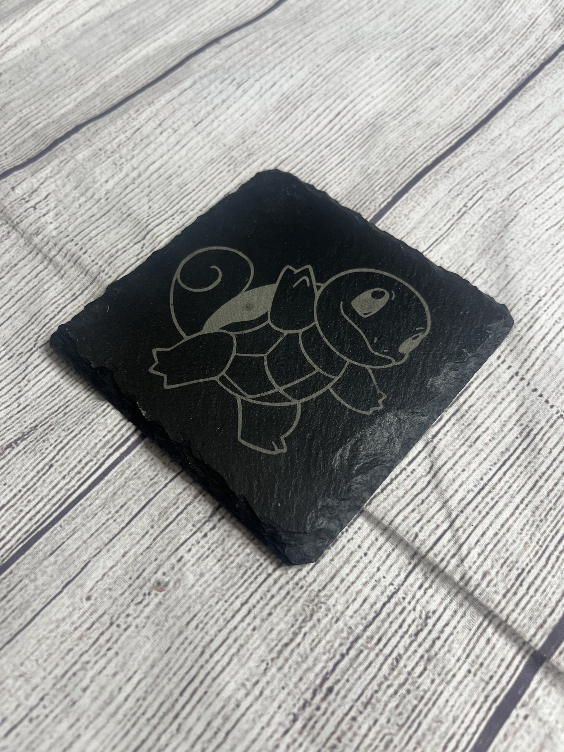 Make a splash with these adorable laser-engraved Squirtle slate coasters. Perfect for Pokémon fans and Water-type enthusiasts, these coasters feature the lovable Tiny Turtle Pokémon meticulously engraved into natural slate, bringing the charm of Squirtle to your home.