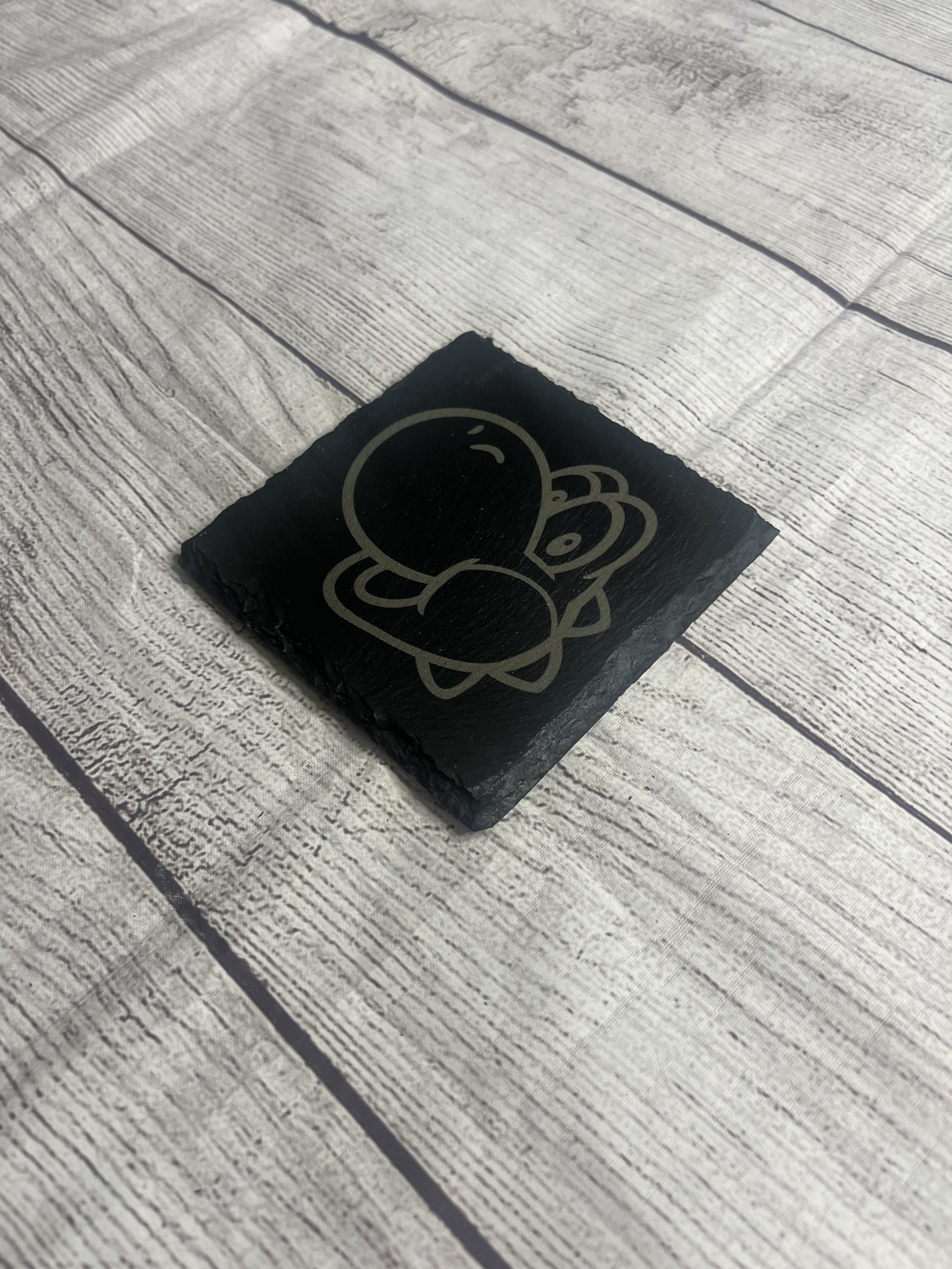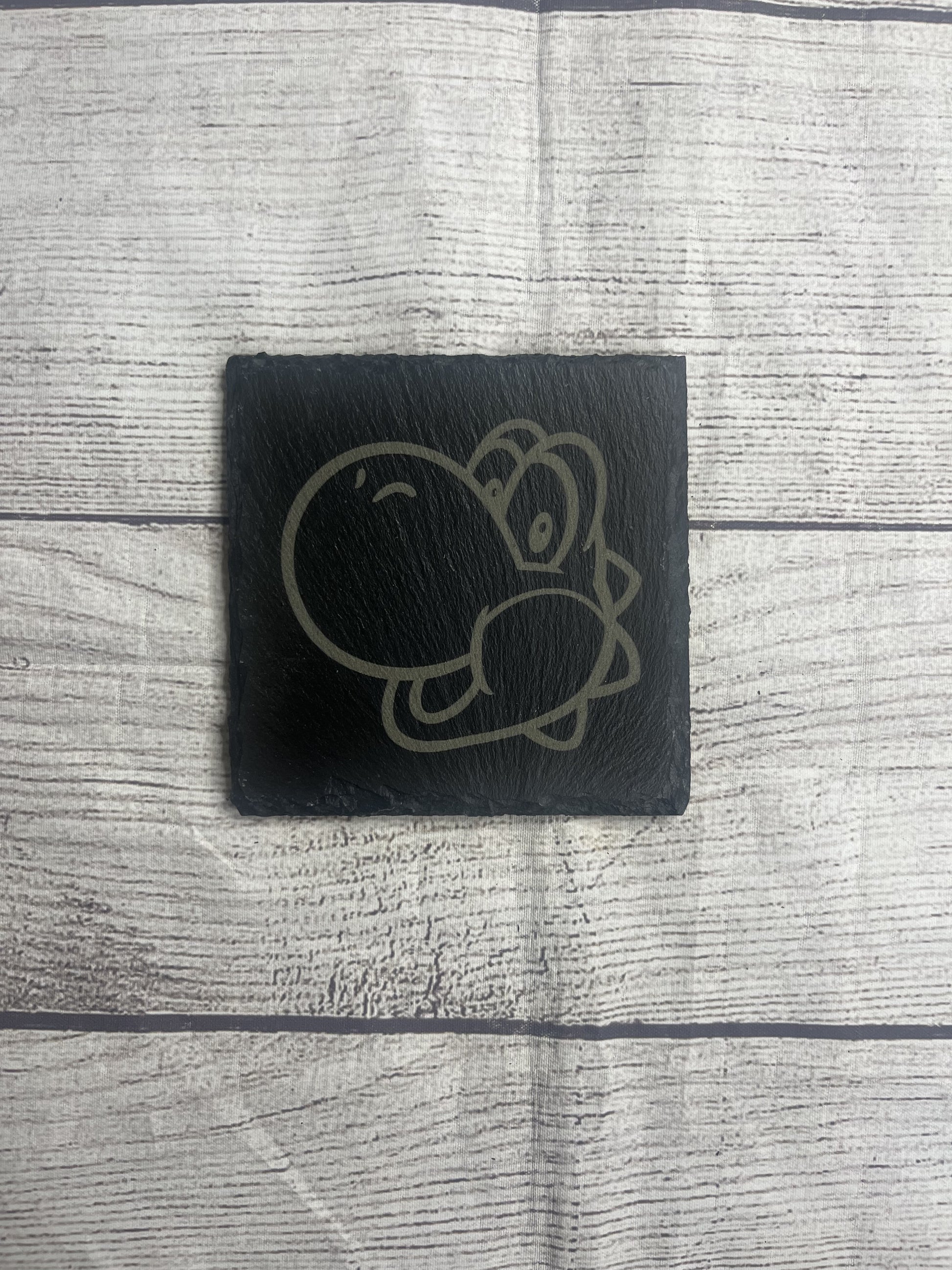 Perfect gift for gamers, fans, or anyone who appreciates unique, functional art. These durable slate coasters are built to last – Yoshi-approved for your coffee table!